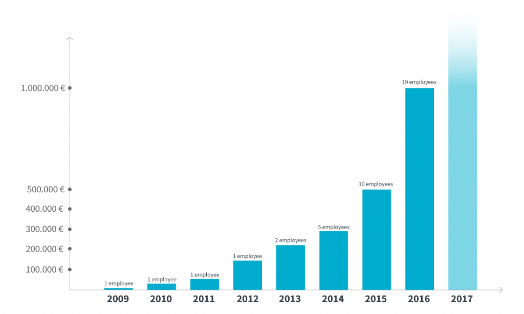 Last year I was sacredly convinced that our story of a 100% growth in incomes and in the number of members of the team will stop and continue more slowly in the year 2016, but as it turns out, I was utterly mistaken. Even though we do not have the final numbers yet, I can tell you that this year we came close to a 100% growth. This can also be seen in the number of colleagues – the number rose from 17 to 27.