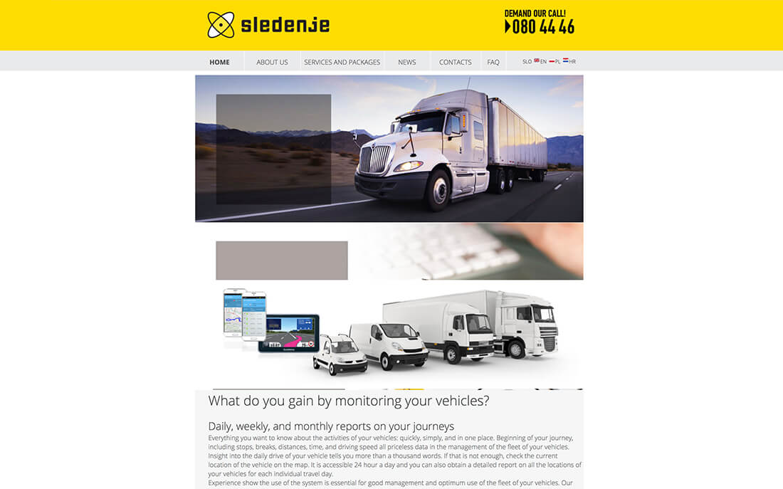 The company Sledenje is the leading company in the field of vehicle tracking and vehicle fleet management. Slowly, the technologically advanced company realized that their website no longer meets the needs of their work and the range of the services they provide. Since they are aware that a website is a strong tool for acquiring new customers, they decided on redesigning it.