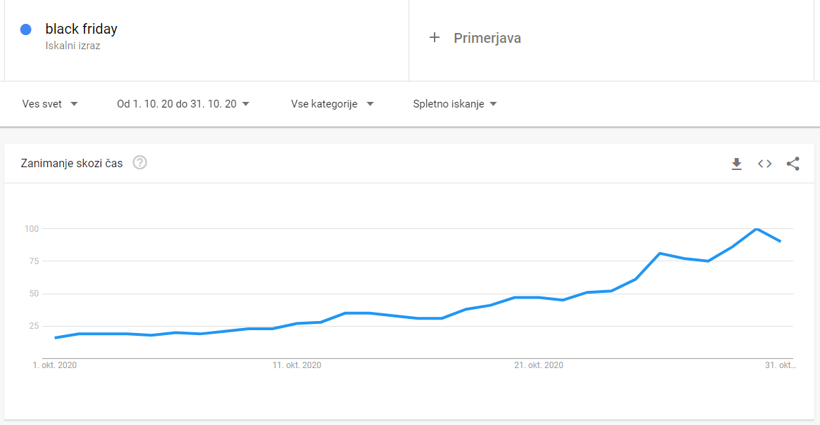 Še preden poletne razprodaje prenehajo prinašati rezultate, začnemo s sanjarjenjem (ja, tudi to včasih počnemo!) o svoji jesenski strategiji. Raziskave kažejo, da se spletna iskanja v povezavi s črnim petkom začnejo že v septembru. Optiwebovi oglaševalci, analitiki ter skrbniki ključnih naročnikov zato že zgodaj staknejo glave in se odpravijo na lov za najprimernejšimi pristopi in strategijami.