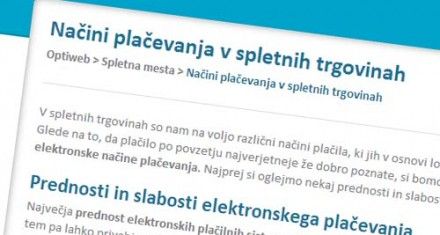 Spletno trgovino vam izdelamo tudi v podjetju Optiweb, kjer vam poleg izdelave spletne trgovine nudimo tudi implementacijo različnih elektronskih plačilnih sistemov ter povezavo s programi za zaloge in računovodstvom. Za več informacij si oglejte našo ponudbo.