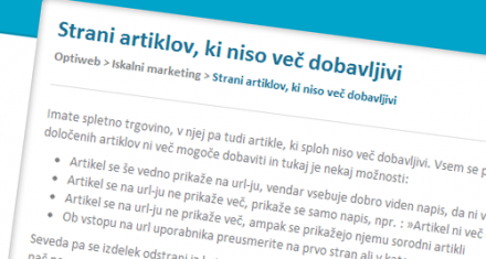 - Artikel se na url-ju ne prikaže več, prikaže se samo napis, npr. : »Artikel ni več dobavljiv!«