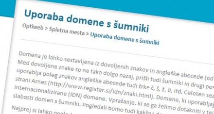 Domena je lahko sestavljena iz dovoljenih znakov in angleške abecede (od A do Z), številk (0 – 9) in znaka – (vezaja). Med dovoljene znake so ne tako dolgo nazaj, prišli tudi šumniki in drugi posebni znaki. Naša .si domena tako lahko uporablja poleg znakov angleške abecede tudi črke č, š, ž, ü, itd. Celoten seznam dovoljenih znakov najdete na spletni strani Arnes. Domene, ki uporabljajo posebne znake, se imenujejo se tudi internacionalizirane (IDN) domene. Vprašanje, ki se ga želimo dotakniti v tej objavi pa je, kakšne so prednosti oziroma slabosti domen s šumniki. Pogledali bomo tudi kakšna domena je boljša z vidika optimizacije za spletne strani.