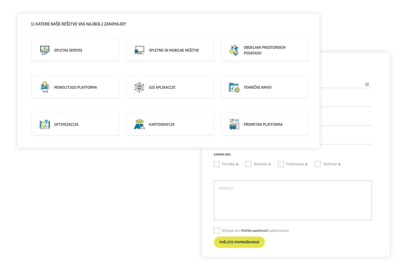 Uporabnik lahko na obrazcu za oddajo povpraševanja izbere storitve zanimanja in želeno aktivnost, ki se izvede po oddaji povpraševanja (najsibodi ponudba, sestanek, prezentacija ali testiranje produkta). S tem uporabniku ponudimo skrajšano pot do želene aktivnosti, Monolitovi ekipi pa zagotovimo več informacij o bodoči stranki.